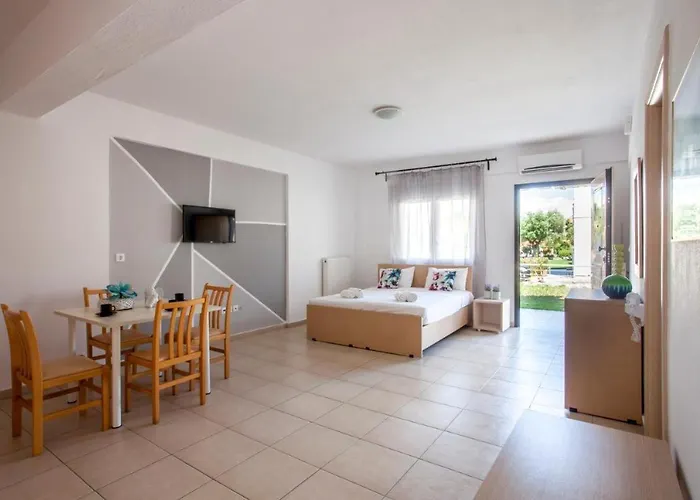 L'appartement comprend des installations indépendantes, telles qu'une kitchenette avec un réfrigérateur et de la verrerie. Serenity Garden House se trouve à proximité immédiate de l'arrêt de bus le plus proche de Chanioti.